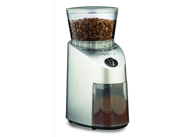 The Capresso Infinity is easy to clean. It features easy-to-remove burrs and grind container, facilitating straightforward cleaning. This ensures you can maintain the grinder without hassle.